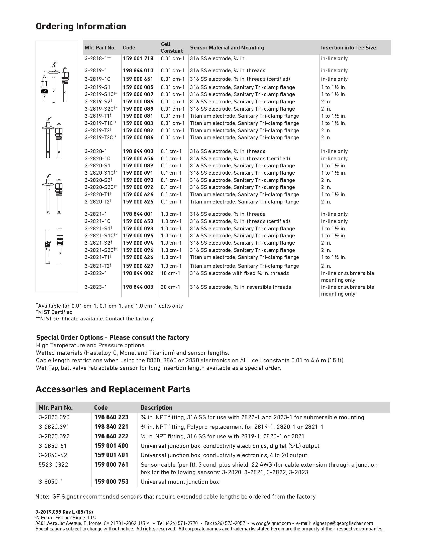 2818-2823 Conductivity-Resistivity Electrodes