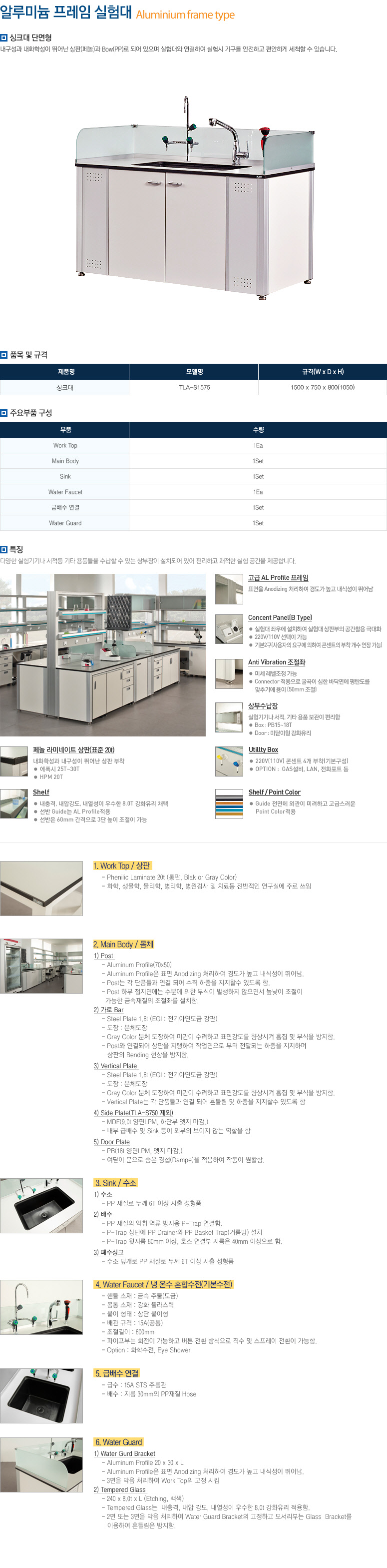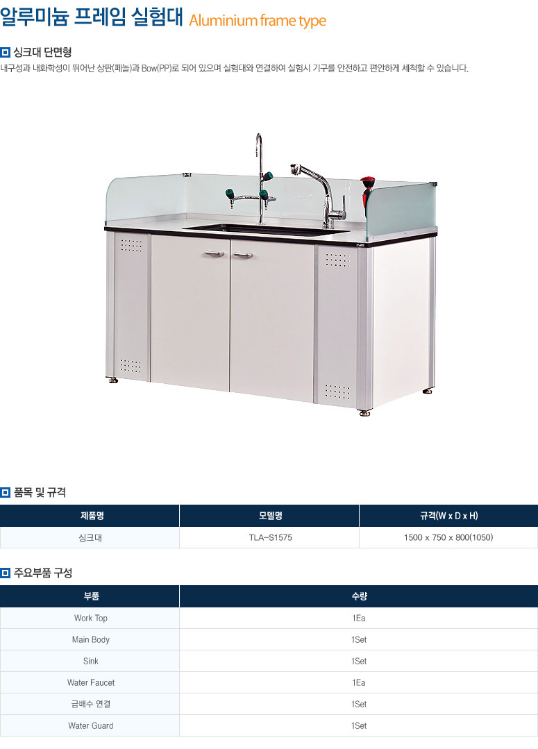 다양한 실험기기나 서적등 기타 용품들을 수납할 수 있는 상부장이 설치되어 있어 편리하고 쾌적한 실험 공간을 제공합니다.