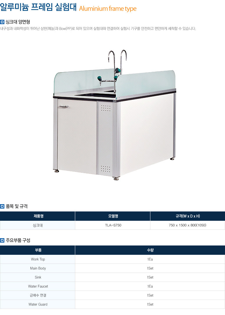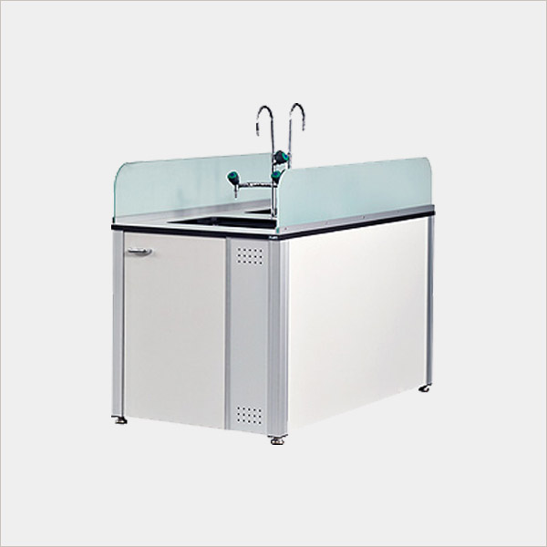 용 도 : 내구성과 내화학성이 뛰어난 상판(페놀)과 Bow(PP)로 되어 있으며 실험대와 연결하여 실험시 기구를 안전하고 편안하게 세척