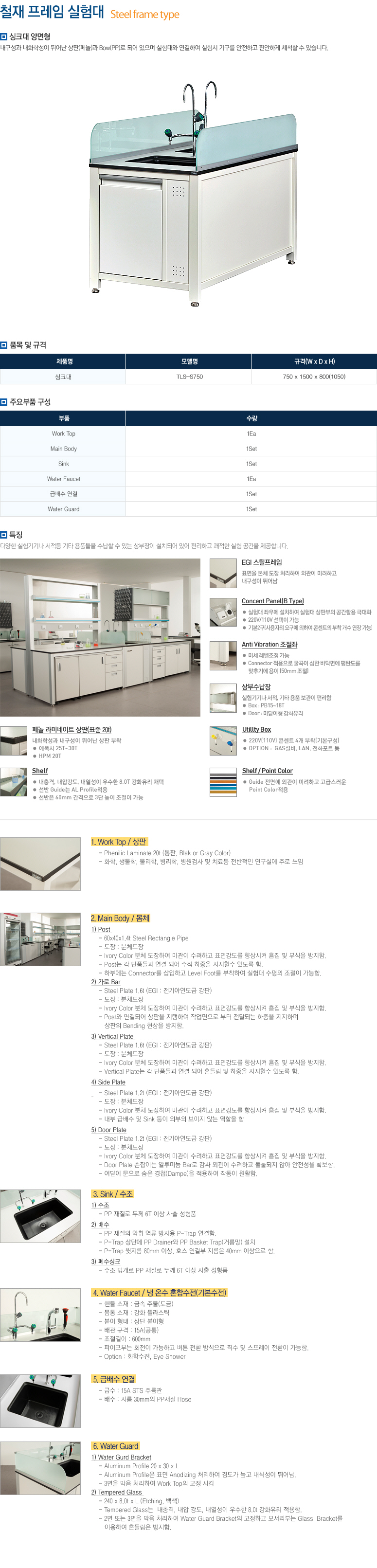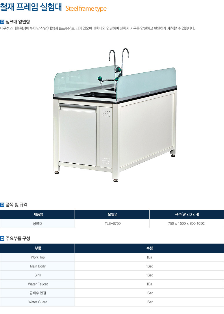 다양한 실험기기나 서적등 기타 용품들을 수납할 수 있는 상부장이 설치되어 있어 편리하고 쾌적한 실험 공간을 제공합니다.