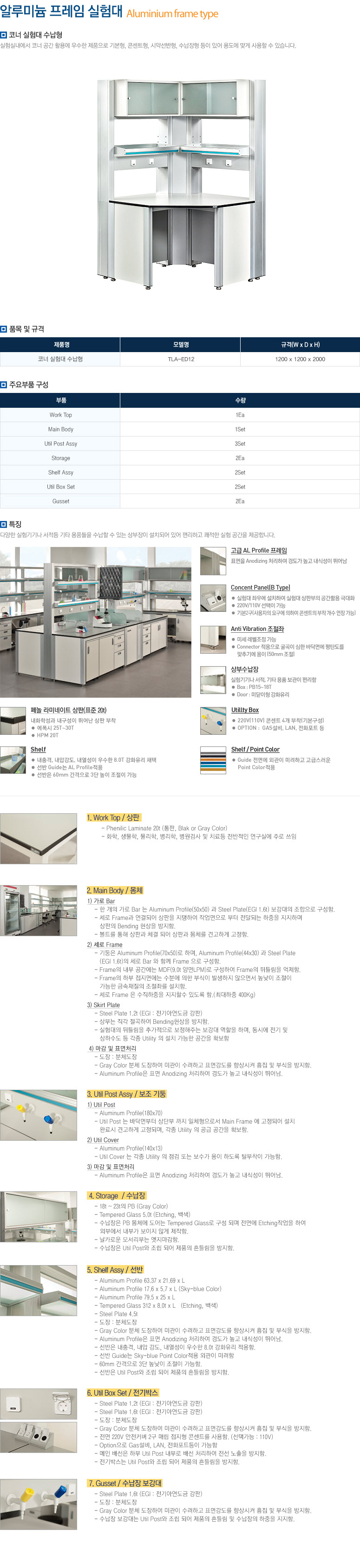 다양한 실험기기나 서적등 기타 용품들을 수납할 수 있는 상부장이 설치되어 있어 편리하고 쾌적한 실험 공간을 제공합니다.