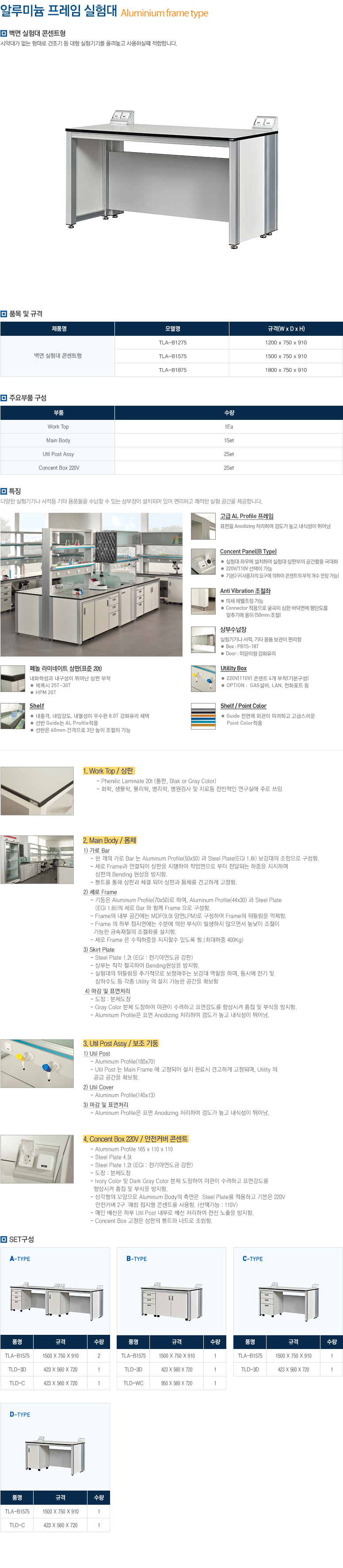 다양한 실험기기나 서적등 기타 용품들을 수납할 수 있는 상부장이 설치되어 있어 편리하고 쾌적한 실험 공간을 제공합니다.