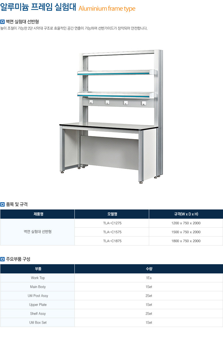 다양한 실험기기나 서적등 기타 용품들을 수납할 수 있는 상부장이 설치되어 있어 편리하고 쾌적한 실험 공간을 제공합니다.