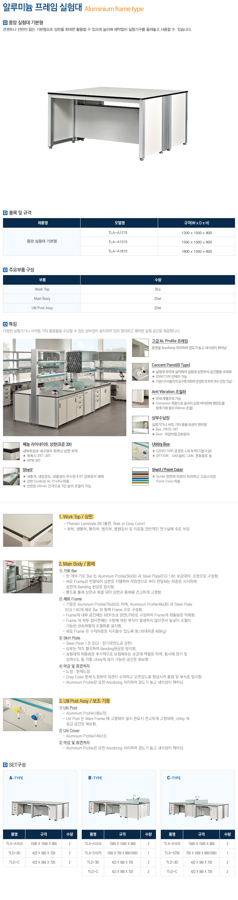 다양한 실험기기나 서적등 기타 용품들을 수납할 수 있는 상부장이 설치되어 있어 편리하고 쾌적한 실험 공간을 제공합니다.
