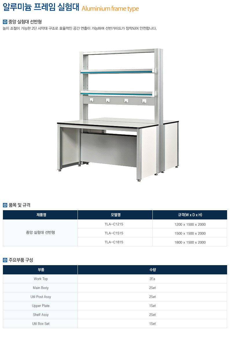 다양한 실험기기나 서적등 기타 용품들을 수납할 수 있는 상부장이 설치되어 있어 편리하고 쾌적한 실험 공간을 제공합니다.