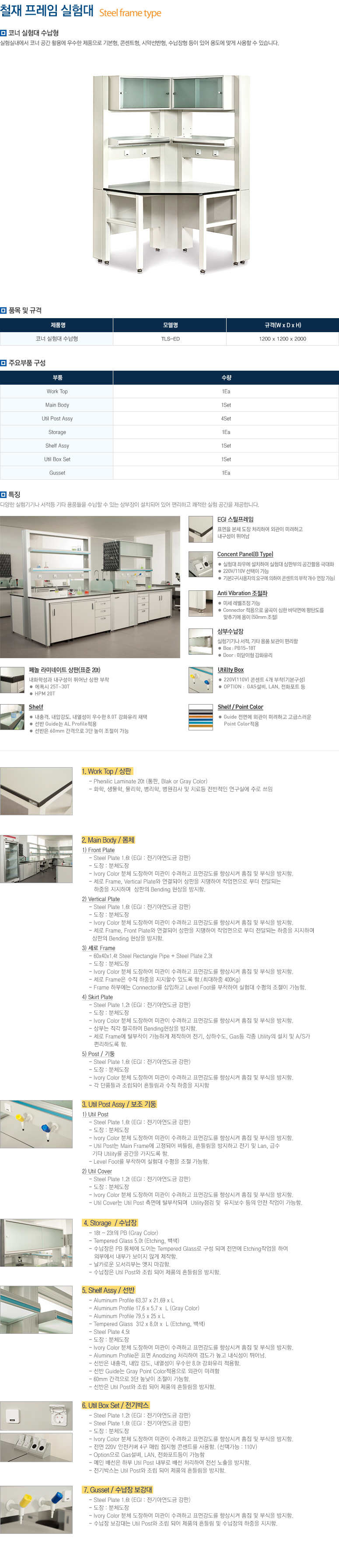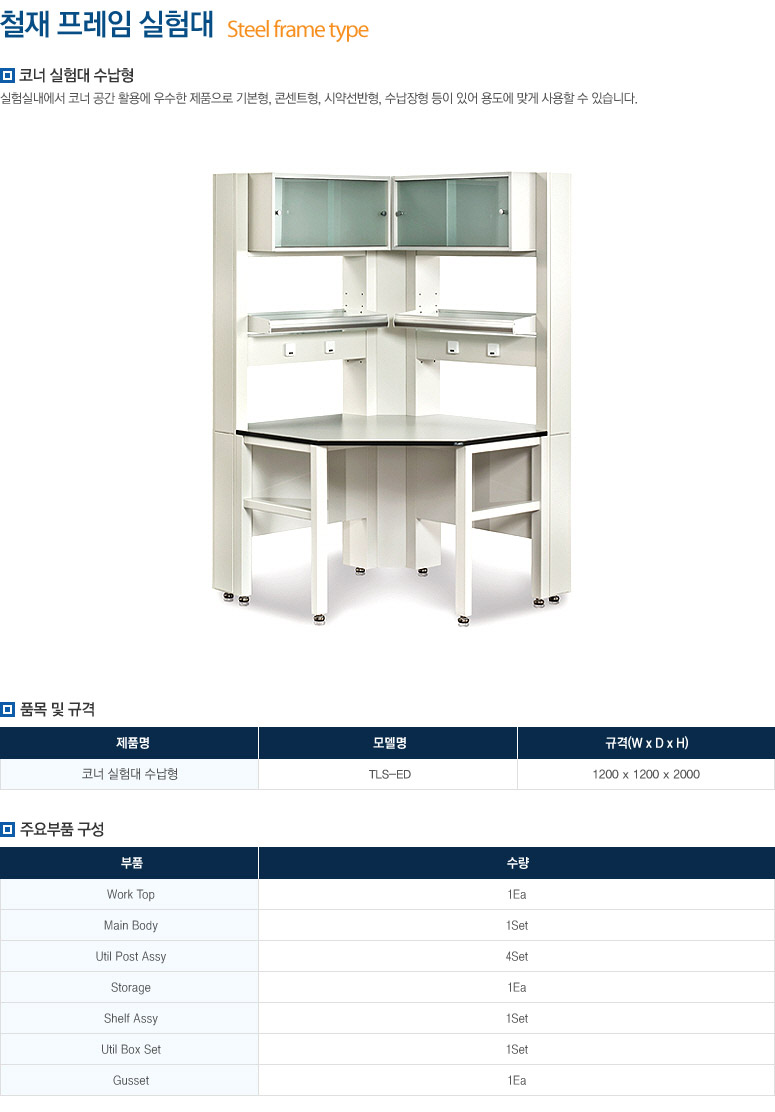 다양한 실험기기나 서적등 기타 용품들을 수납할 수 있는 상부장이 설치되어 있어 편리하고 쾌적한 실험 공간을 제공합니다.
