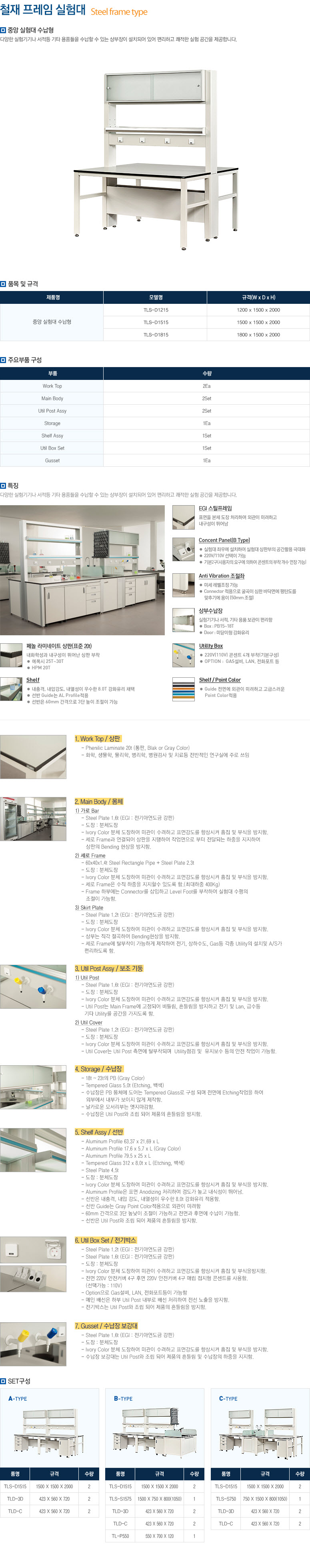 다양한 실험기기나 서적등 기타 용품들을 수납할 수 있는 상부장이 설치되어 있어 편리하고 쾌적한 실험 공간을 제공합니다.