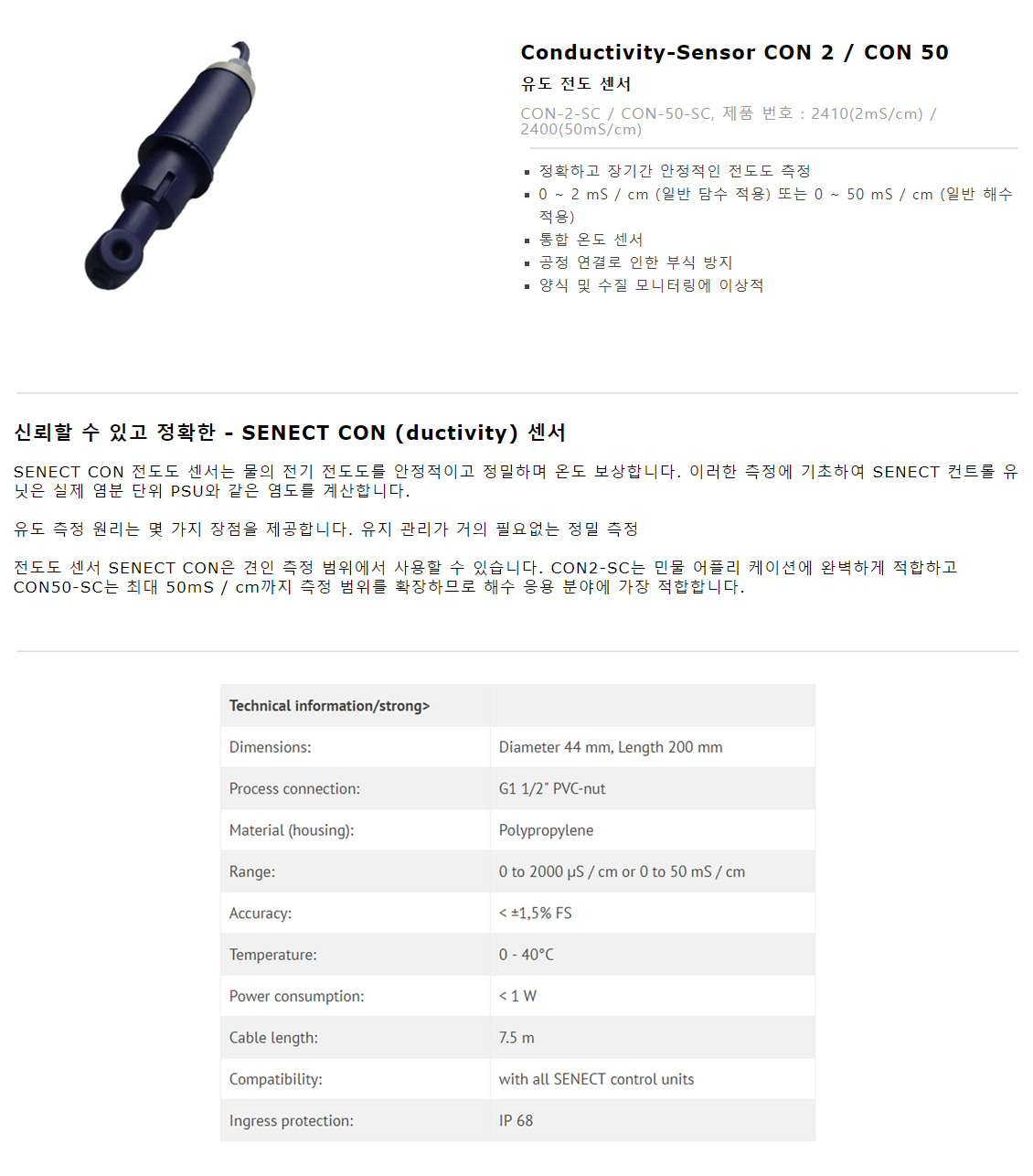 신뢰할 수 있고 정확한 - SENECT CON (ductivity) 센서